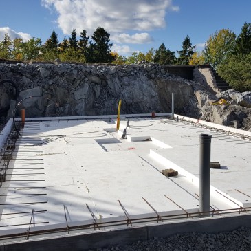 Nu har det satt L-block, frigolit och armering, dock lite mer jobb kvar innan betongen kan komma.