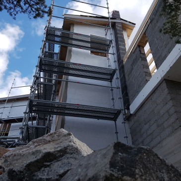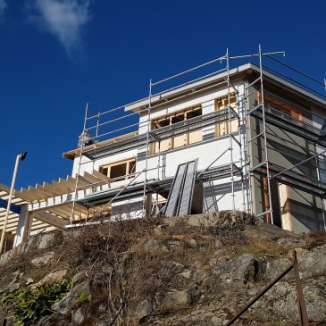 Nu har vi kommit en bit till, tätt tak, första lagret nät och klister påbörjat inför putsningen.