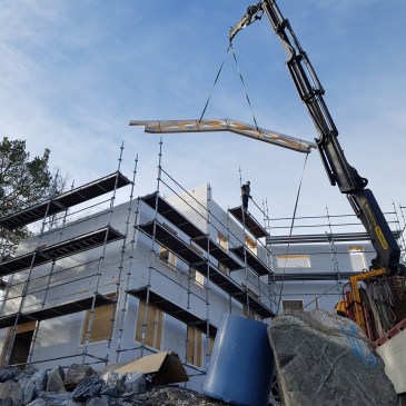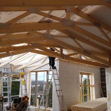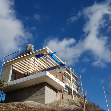 Så nu var det dags… Takstols leverans mitt i stormen.
