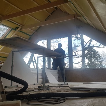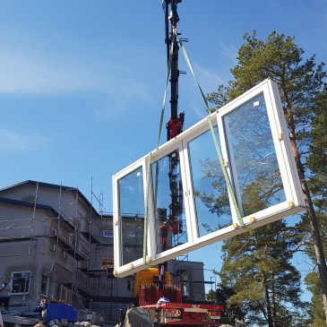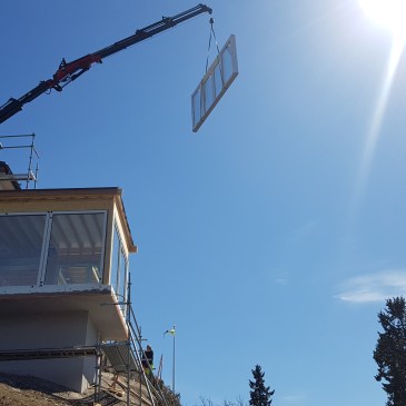 Så nu är det sista fönstret straxt på plats, måste erkänna att det är lite nervöst….