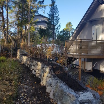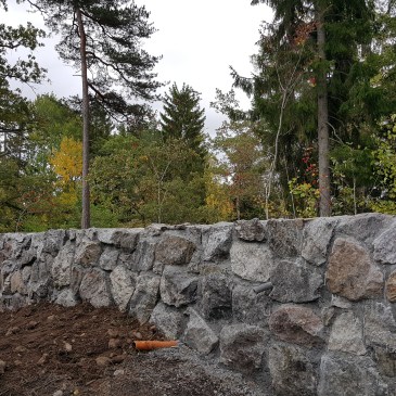 Så nu är muren på plats jorden och häckplantorna beställda, så till nästa helg blir det plantering.