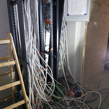 Installation av dataskåp, fick kämpa för att få ner alla kablar.