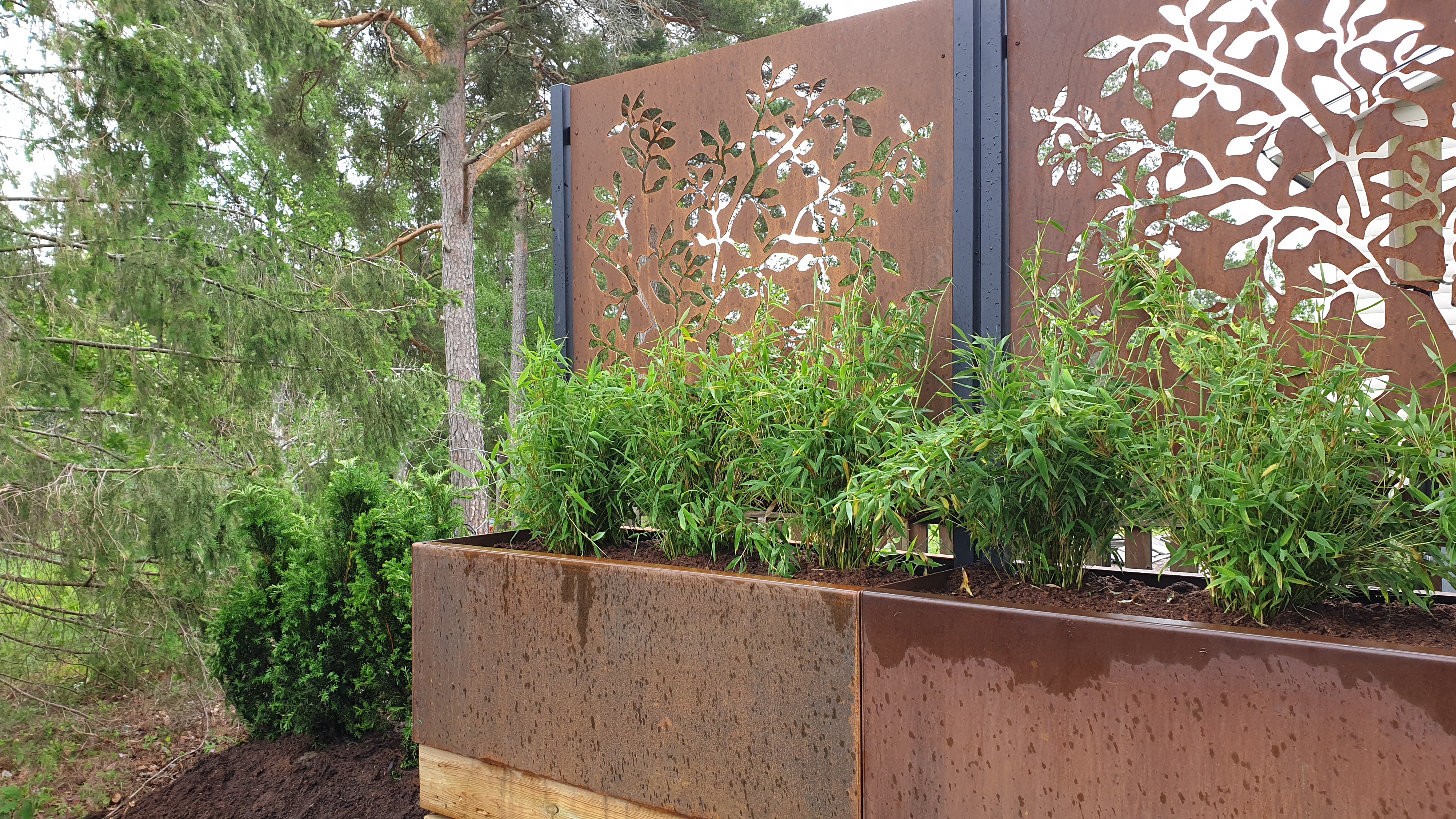 Och idag kom leveransen av växter, så jag passade på att plantera dessa under eftermiddagen. Det småduggade / regnade så det blev blött och lerigt men härligt att det är klart. Nu hoppas vi att växterna mår bra och kommer växa kämpa höga.
