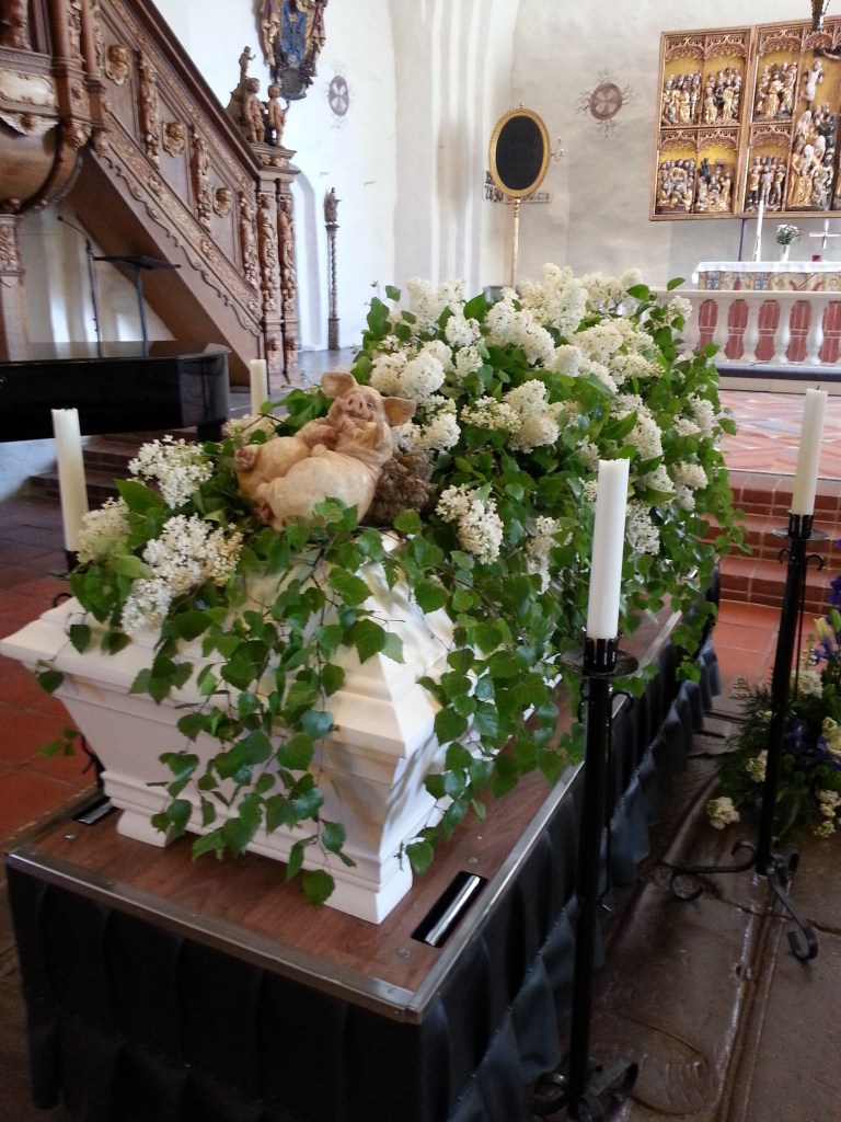 Nu blev det begravning som vi på något vis tog oss igenom, har lite svårt att ändå förstå. Din kista var så vacker helt fylld av nyutslagna syrener som Anna både plockat och dekorerat med. Kommer för evigt vara henne tacksam.